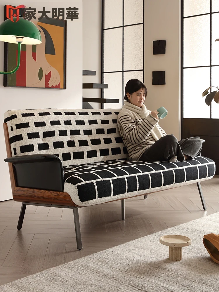 チェック柄デザイナーソファ - 小さなリビングにぴったり!高級感あふれる北欧モダンスタイル、実木フレームと布地を使用したシンプルで洗練されたデザイン。あなたの空間に特別な魅力を加えます!
