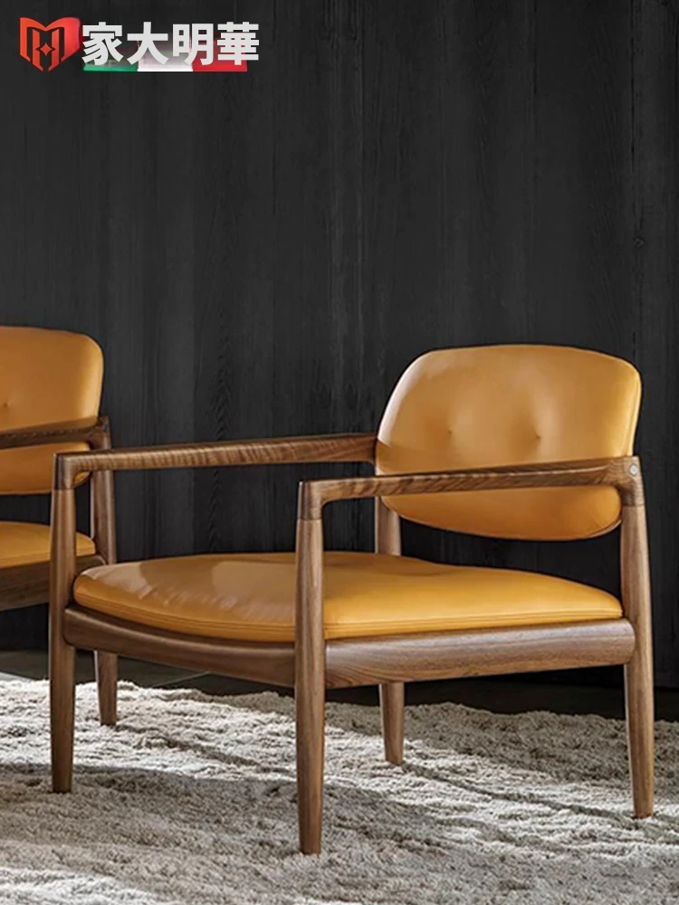 大明华デザインのシングルソファチェア - 高級感漂うミニマルな中古スタイル、リビングルームやバルコニーに最適!本革製のトラチェアで、別荘にもぴったりな洗練された一品。