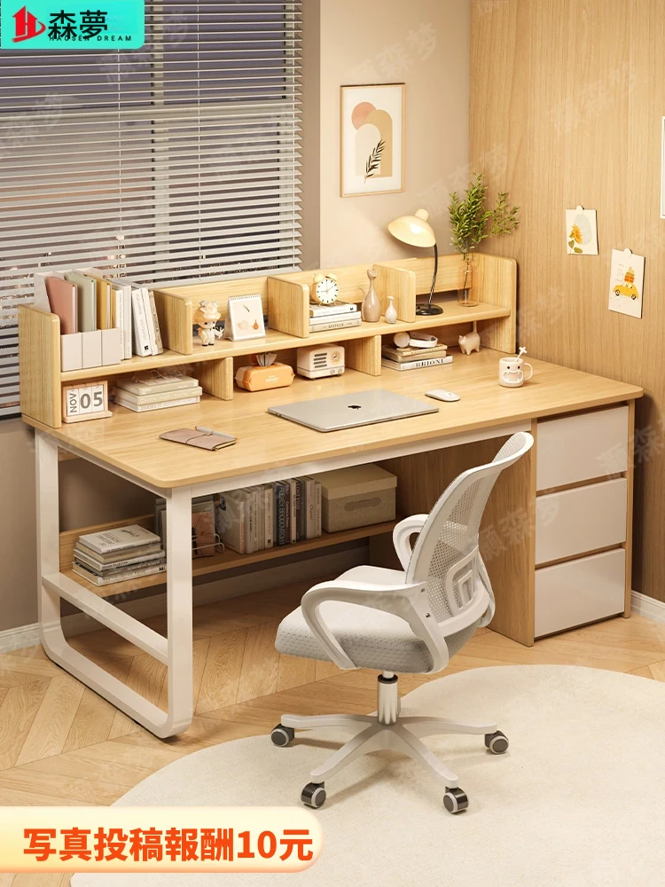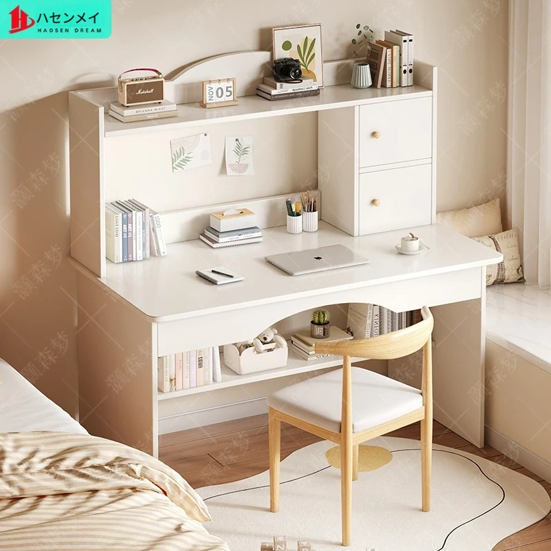 女子向けシンプルモダンデザイン!多機能デスク - 自宅用パソコンデスク&書棚一体型、寝室にぴったりの学習・執筆デスク。快適な作業環境を提供します!