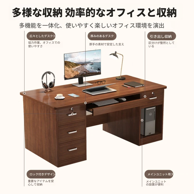ロック機能付きシンプルなデザインのオフィスデスク - 引き出し付き、在宅勤務や職場に最適なコンビネーションデスク!快適な作業環境を提供します。