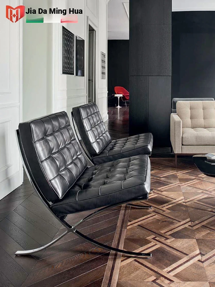 Barcelona Chair - Premium Top-Grain Leather Lounge Chair for Living Room and Balcony - Stylish High-End Tiger Chair - Single Armchair Recliner for Ultimate Comfort