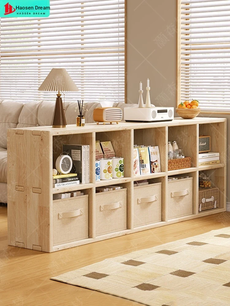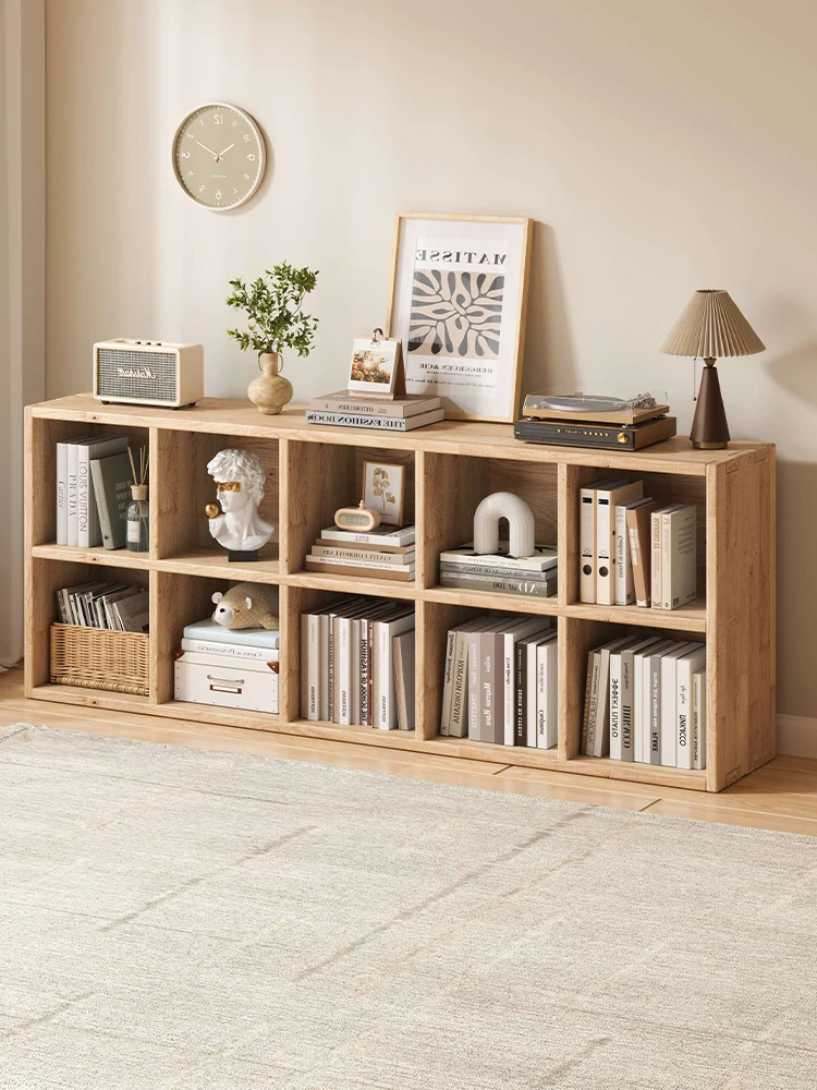 Solid Wood Bookshelf - Floor-standing Low Cabinet, Wall-mounted Storage Rack, Living Room Cube Organizer, Ideal for Kindergarten Storage, Home Bookshelf for Efficient Organization and Style