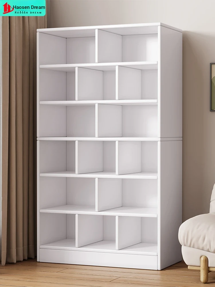 Minimalist Solid Wood Bookshelf - Freestanding Wall Cabinet for Home Use, Ideal for Kindergarten Storage, Versatile Cubby Organizer for Efficient Space Management