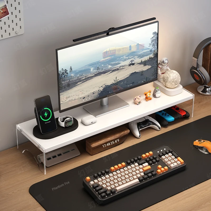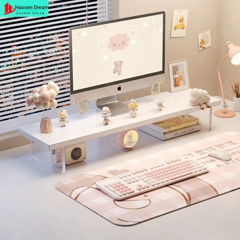 Acrylic Desktop Stand for PC Monitors - Stylish Office Laptop Organizer & Elevated Storage Rack for Enhanced Workspace Efficiency