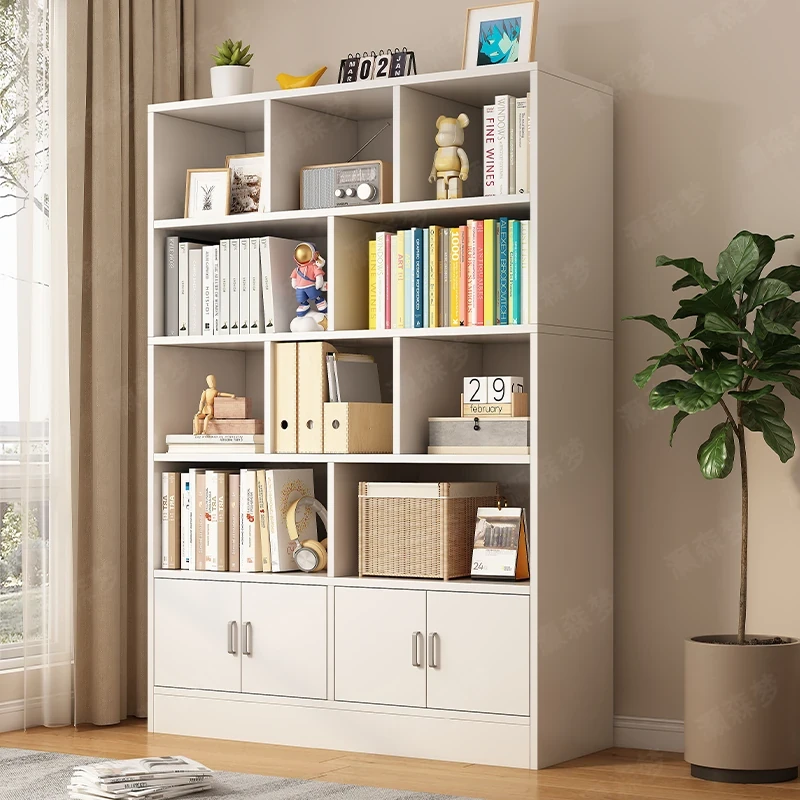 Stylish Floor-to-Wall Bookshelf with Doors - Multi-Layer Storage Display Cabinet for Living Room, Perfect for Organizing Books and Home Decor