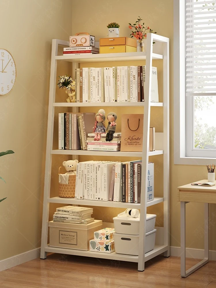 Stylish Iron Multi-Tier Bookshelf and Storage Rack - Space-Saving Floor Standing Organizer for Home Use, Narrow Side Cabinet, and Ladder-Style Display Unit