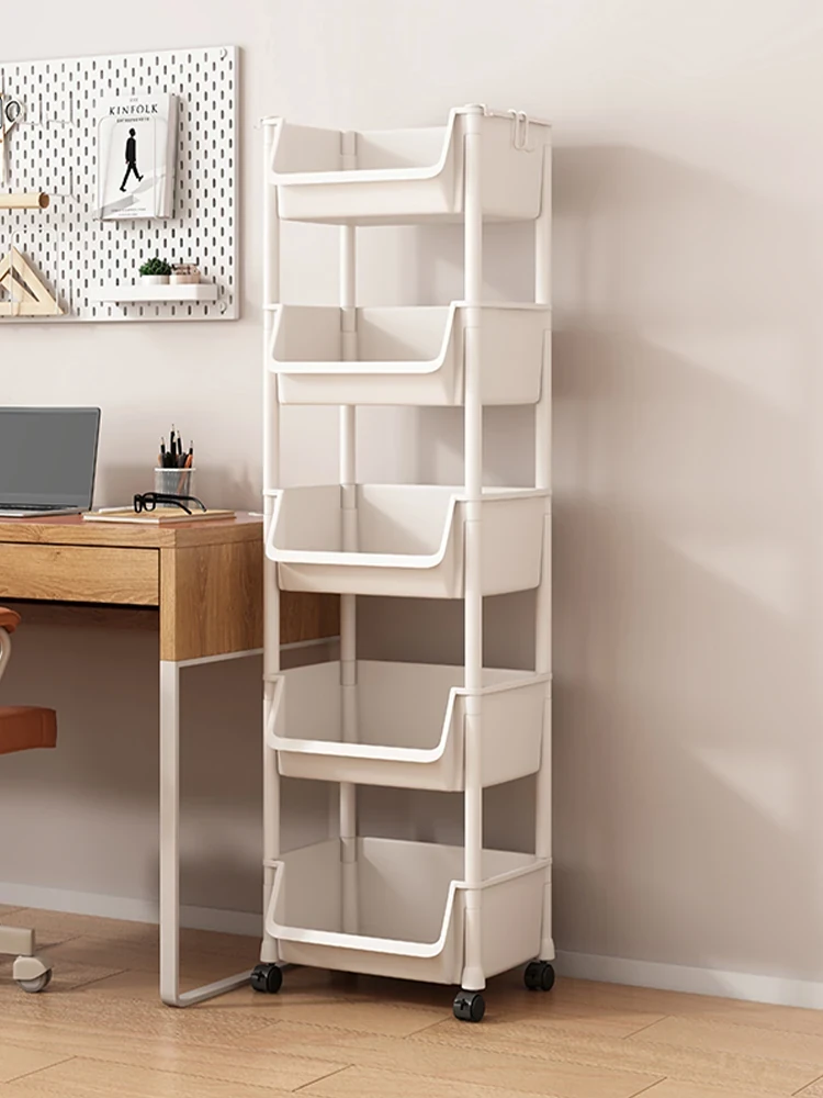 Mobile Bookshelf Storage Rack for Kids - Multi-Tiered Rolling Cart with Wheels for Toys and Books, Easy Floor Bookshelf Organizer