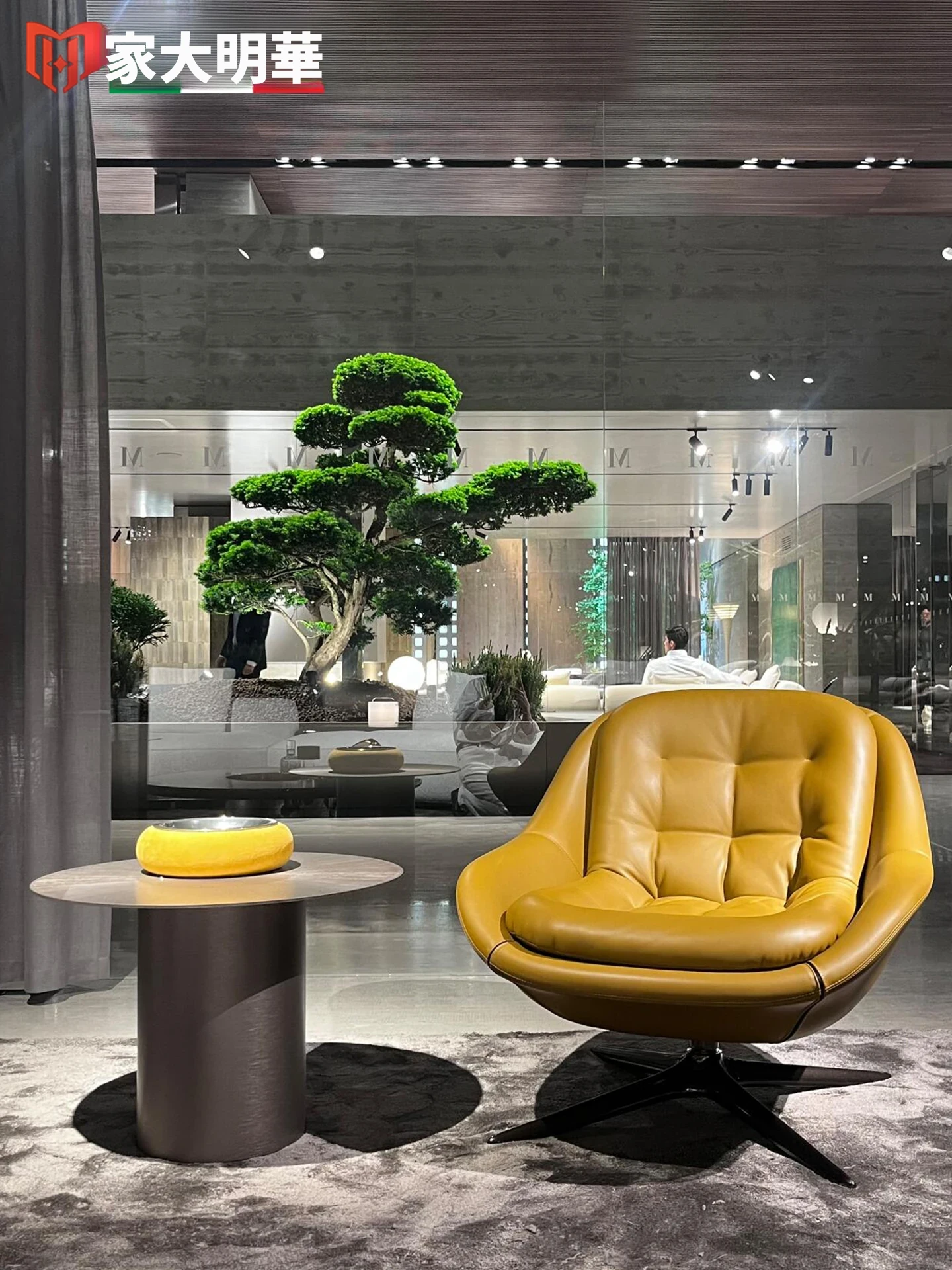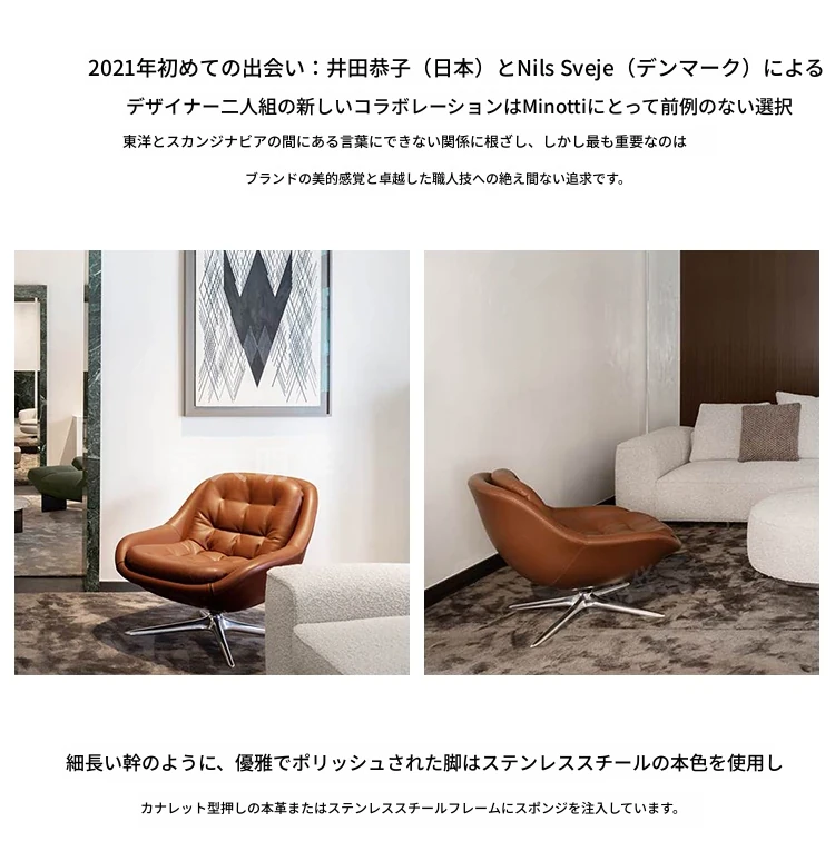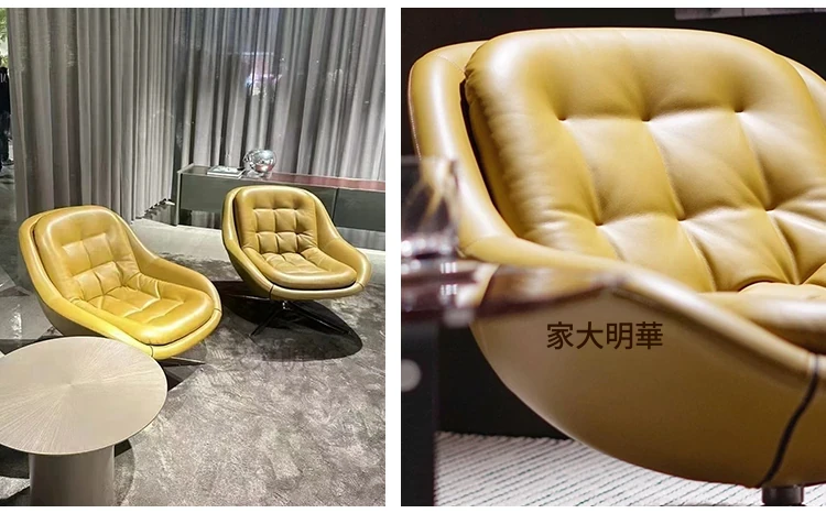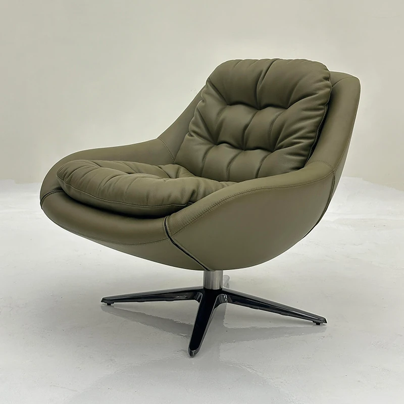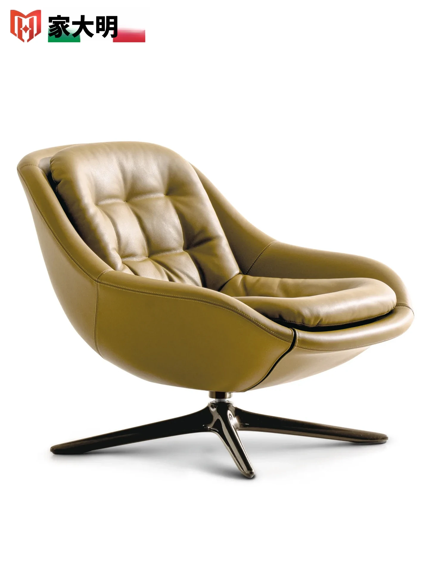 イタリアンミニマル本革ソファ 高級別荘向けラウンドリクライナー 軽やかなラグジュアリー感あふれる人気の休憩チェア