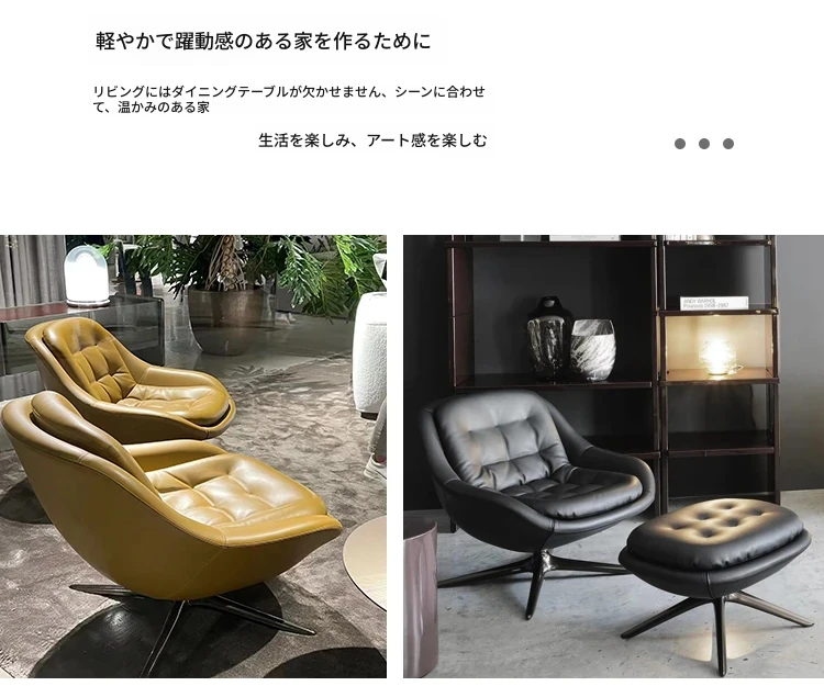 一人掛けソファ|軽やかなラグジュアリー感のイタリアンデザイン|北欧スタイルの木製フレーム|リビングやバルコニーにぴったりのアーティスティックな本革リラックスチェア