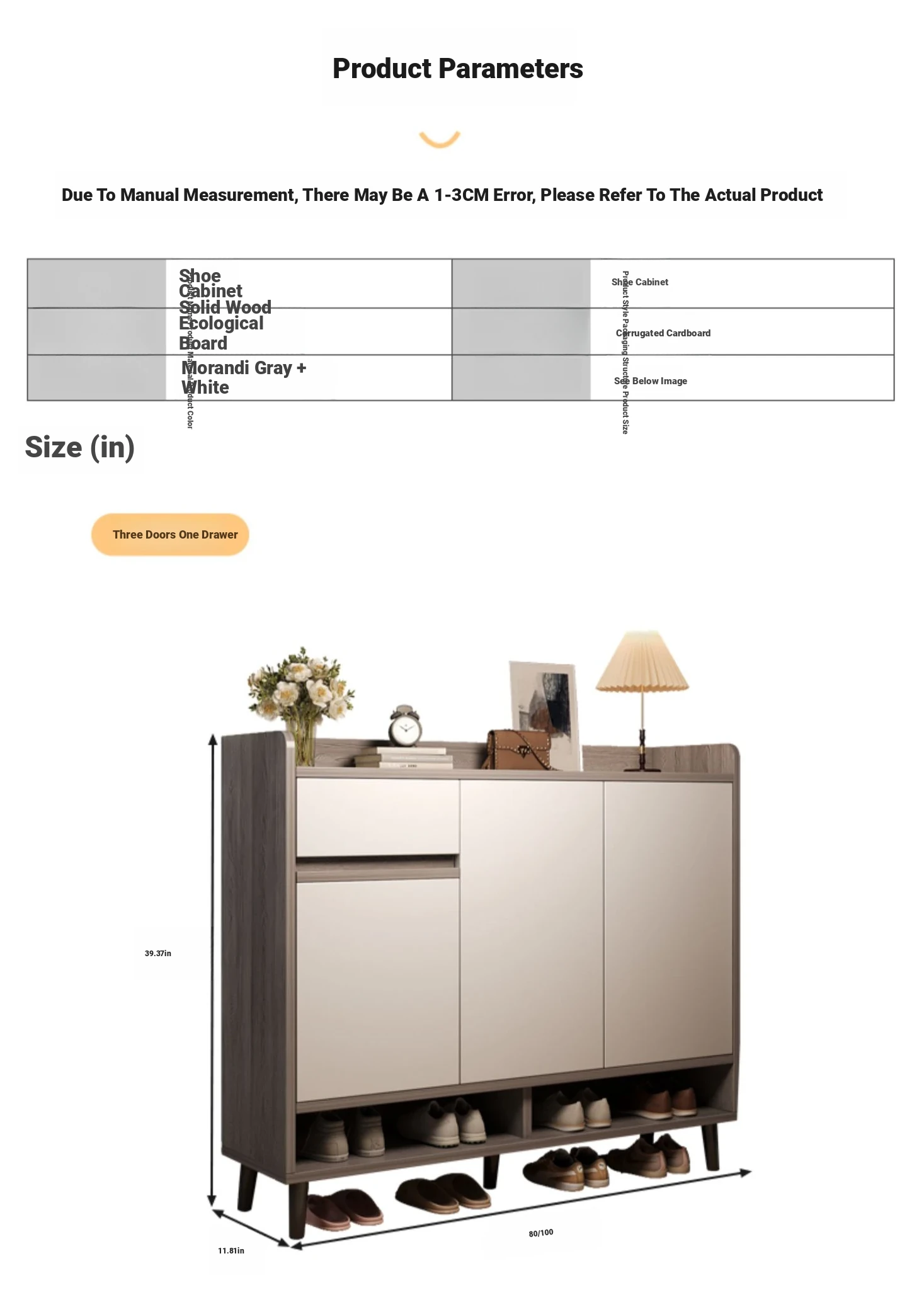 High quality density board★Three doors and one smoke] Morandi Gray 31.50in*11.81in*39.37in