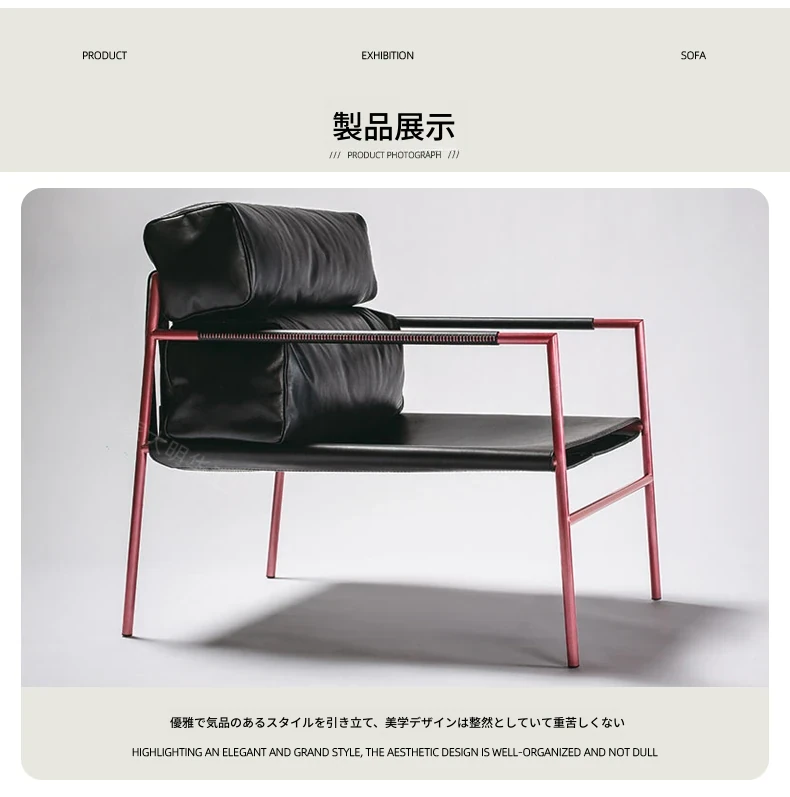 一人掛けソファ|軽やかなラグジュアリー感のイタリアンデザイン|北欧スタイルの木製フレーム|リビングやバルコニーにぴったりのアーティスティックな本革リラックスチェア
