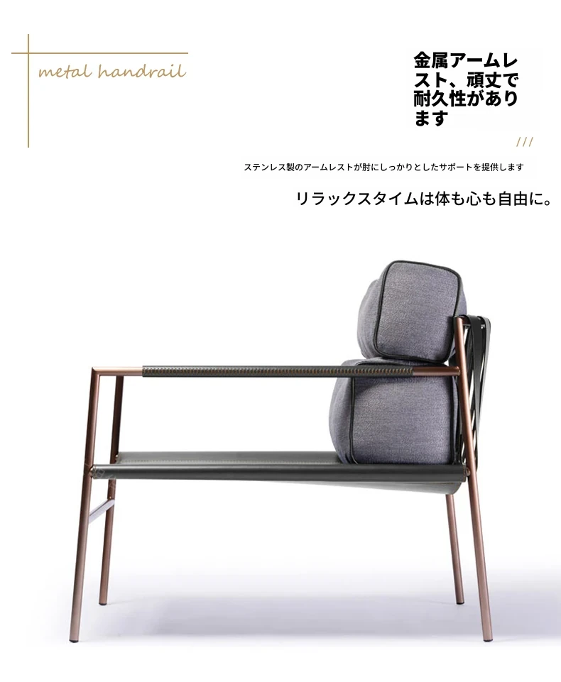 一人用軽奢スタイルのネット人気ソファチェア|型崩れしない高密度ウレタンフォーム|モダンミニマリストデザイン|北欧アートアームレスト付きのリラックスチェア!