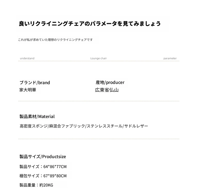 イタリアンシンプルデザインのリクライニングソファチェア、リビングやバルコニーに最適!本革製、豪華な別荘スタイルの木製ミニマルリラックスチェア。心地よいひとときを演出します。
