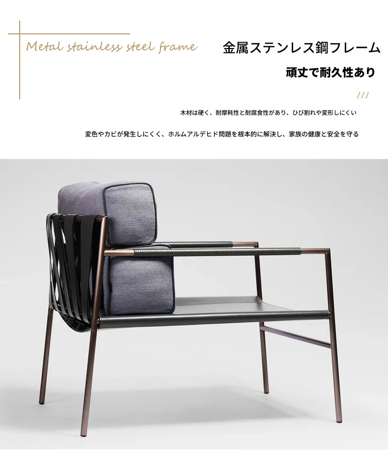 バウハウス風の一人掛けソファチェア、イタリアンスタイルの二人掛けソファ、ステンレス製の高級デザイナー中古風リビングソファ。洗練されたデザインで、あなたの空間に特別な魅力をプラス!