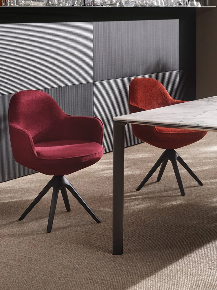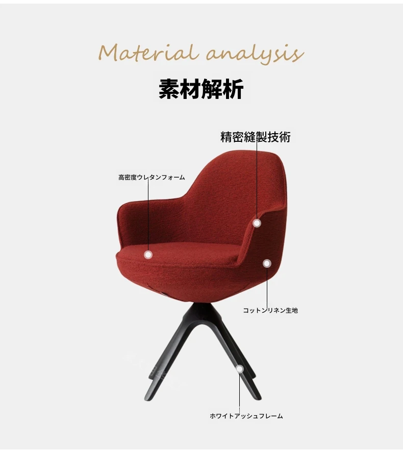 イタリアンミニマリストダイニングチェア - モダンでシンプルな無垢材製、肘掛け付きの家庭用椅子。小型テーブルや小さなスペースに最適!デザインと快適さを兼ね備えた一品。